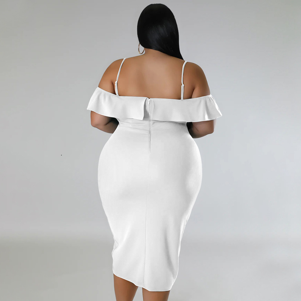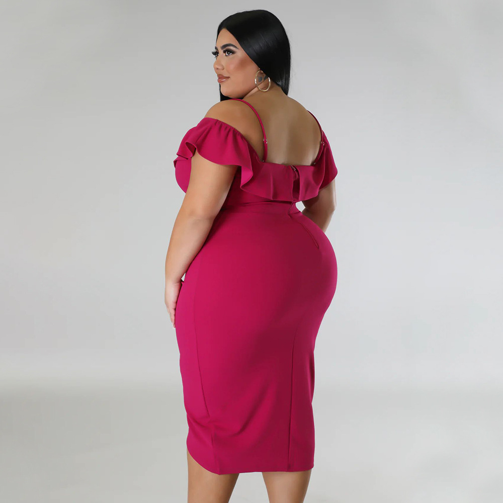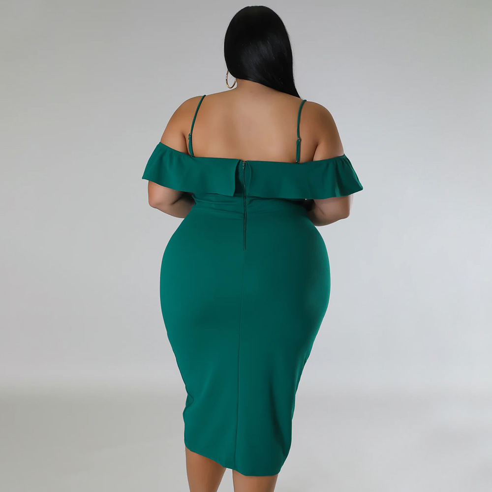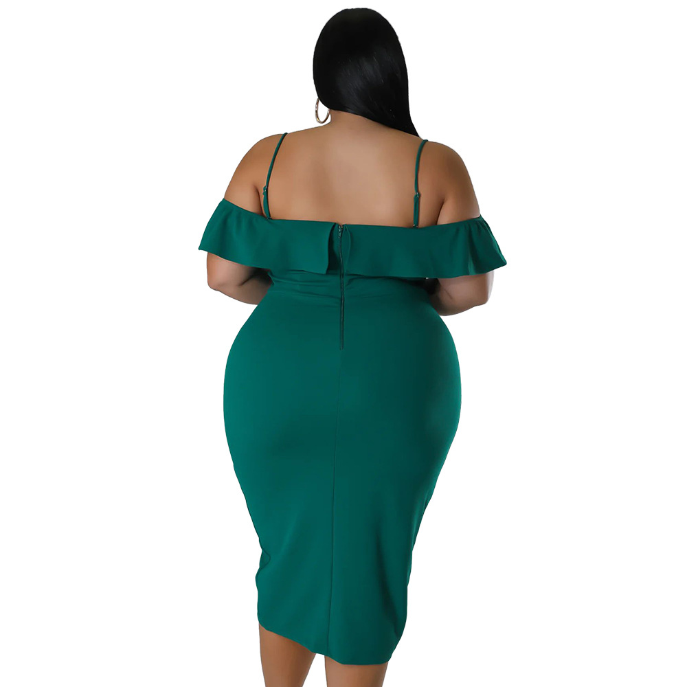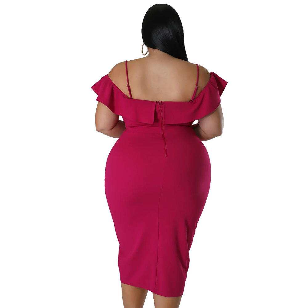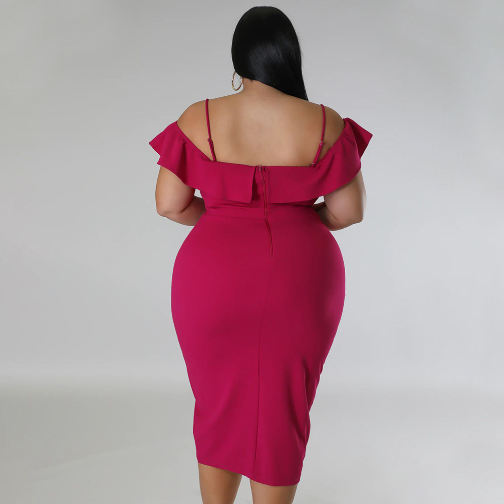 Solid-color Dress Halter-neck Midi Skirt