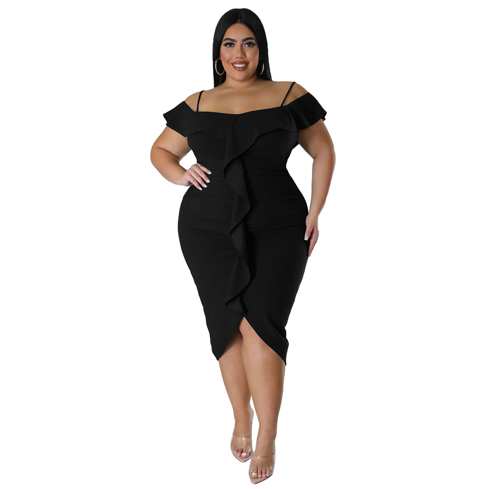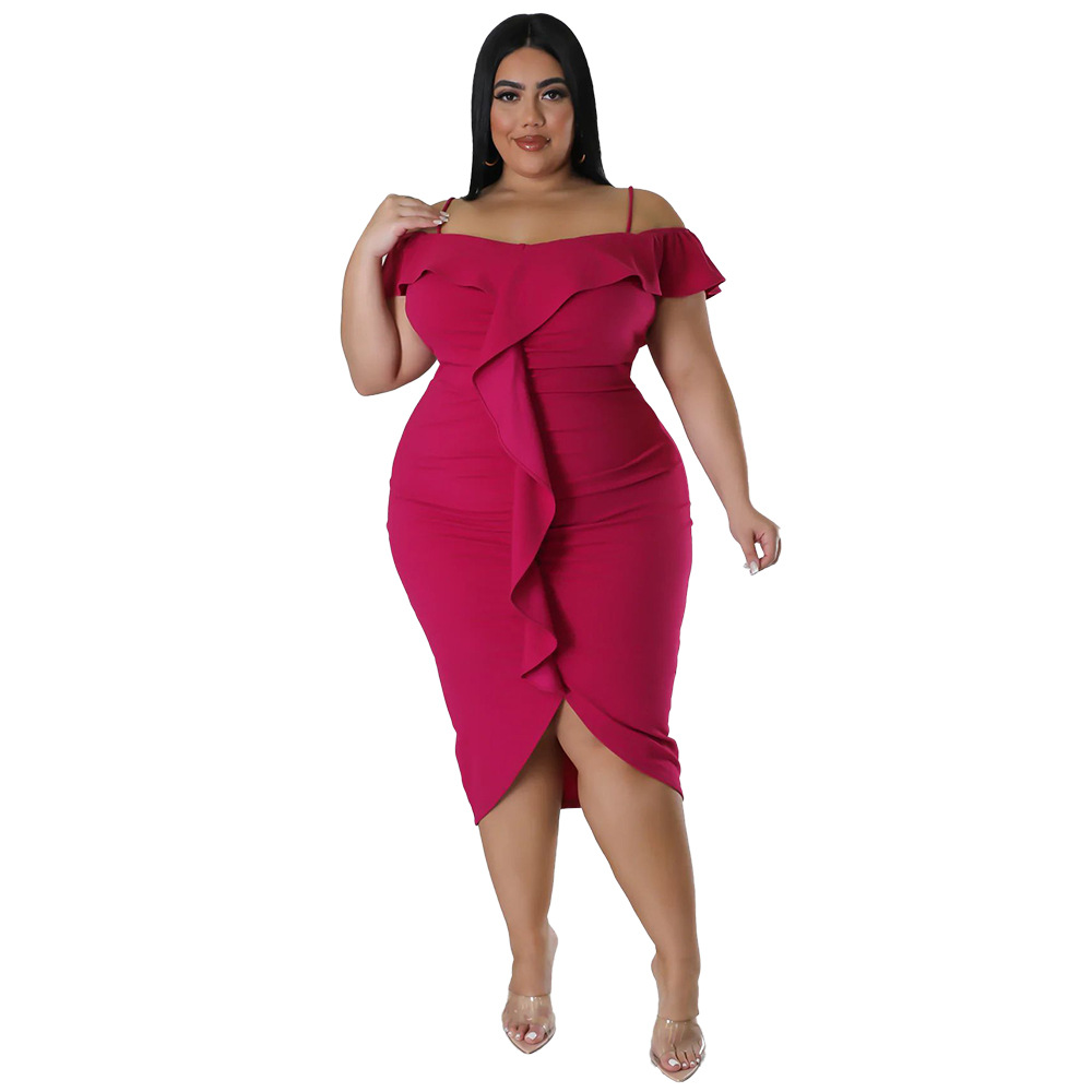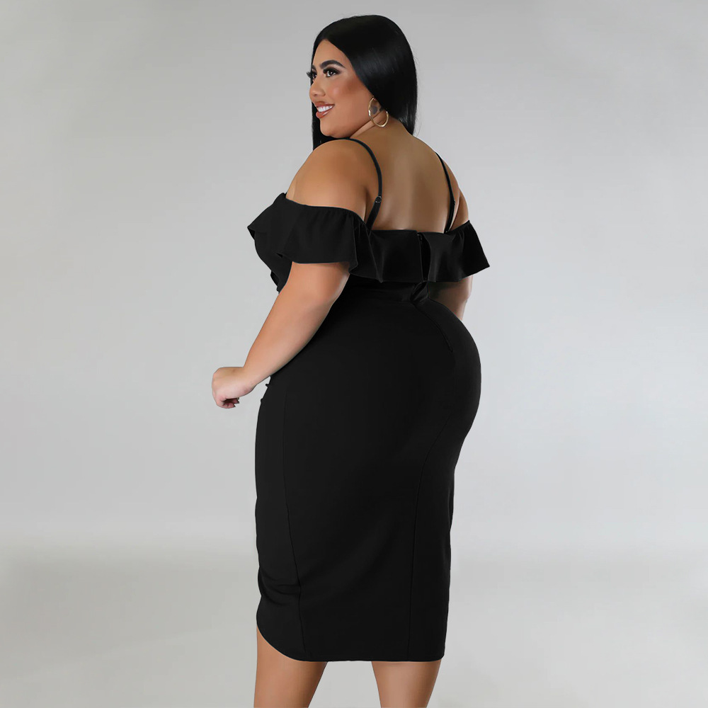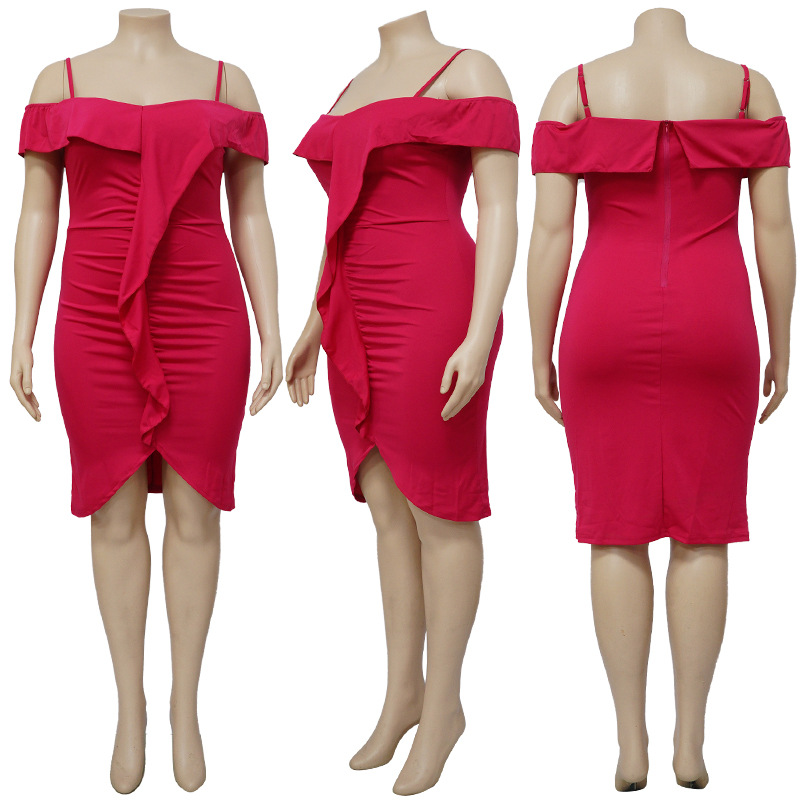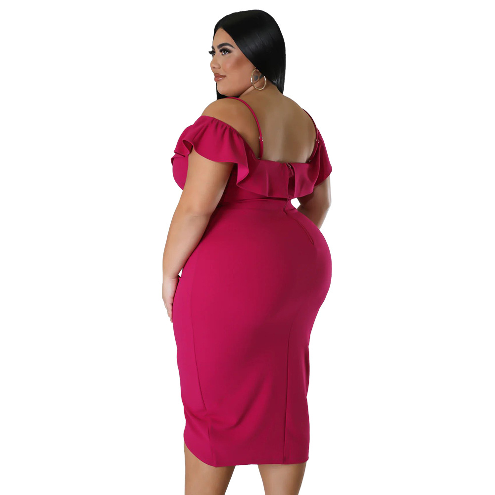 Solid-color Dress Halter-neck Midi Skirt