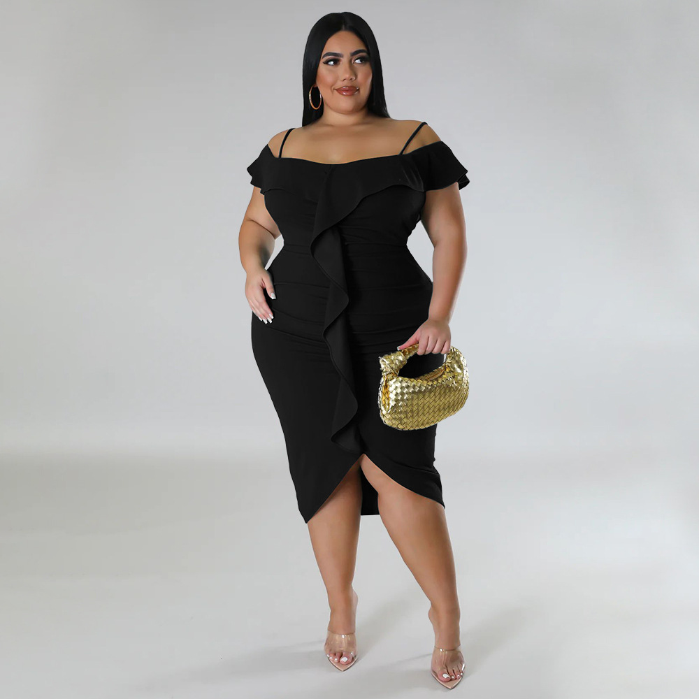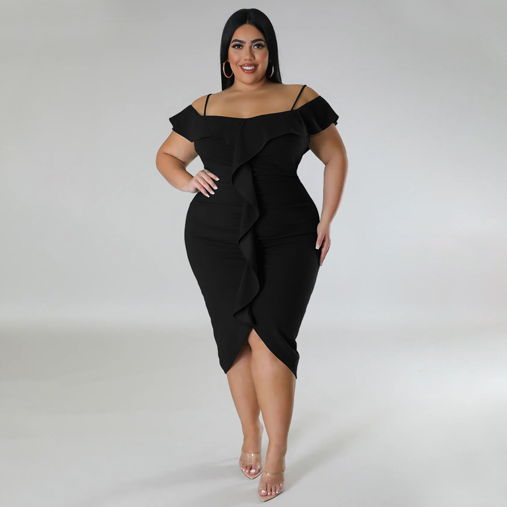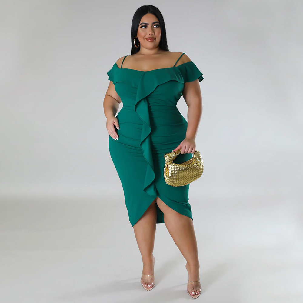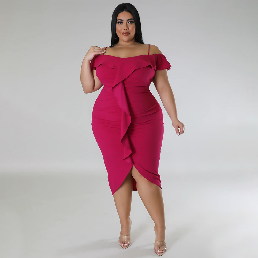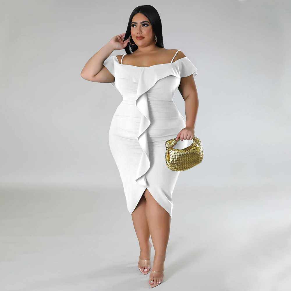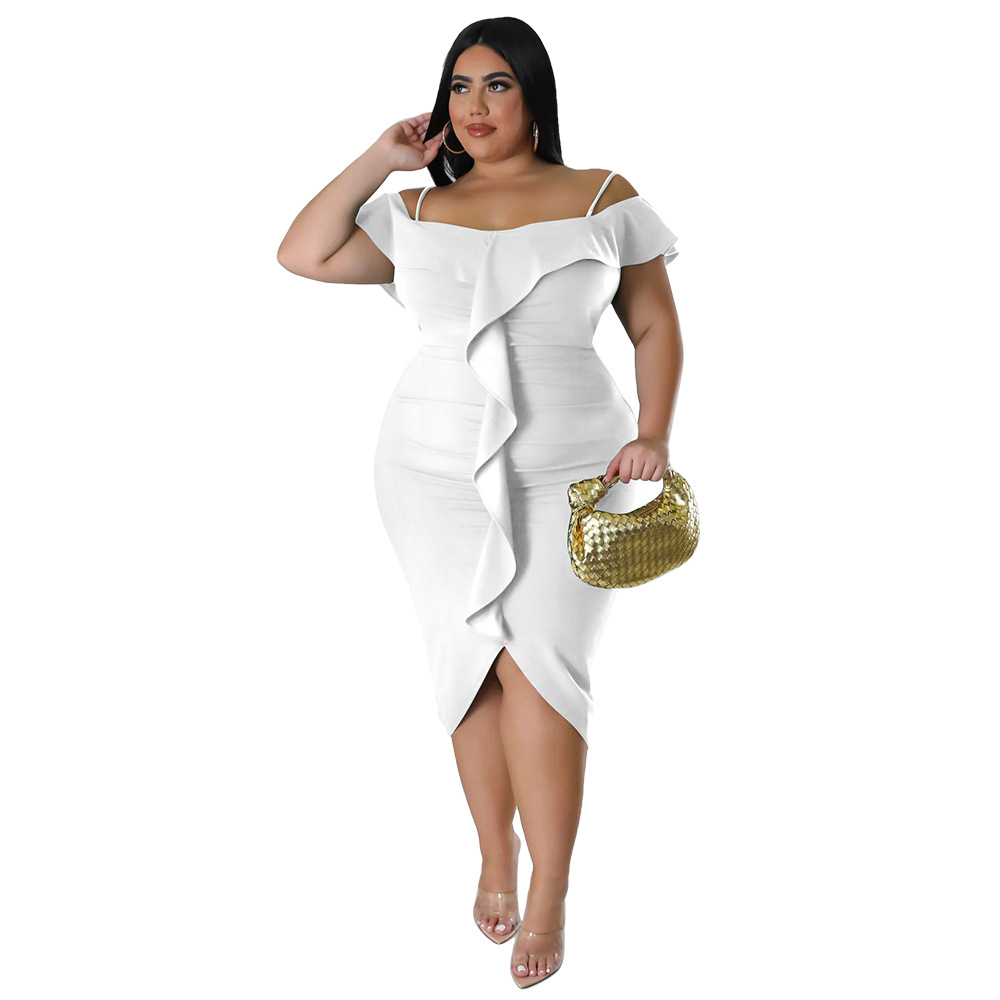 Solid-color Dress Halter-neck Midi Skirt